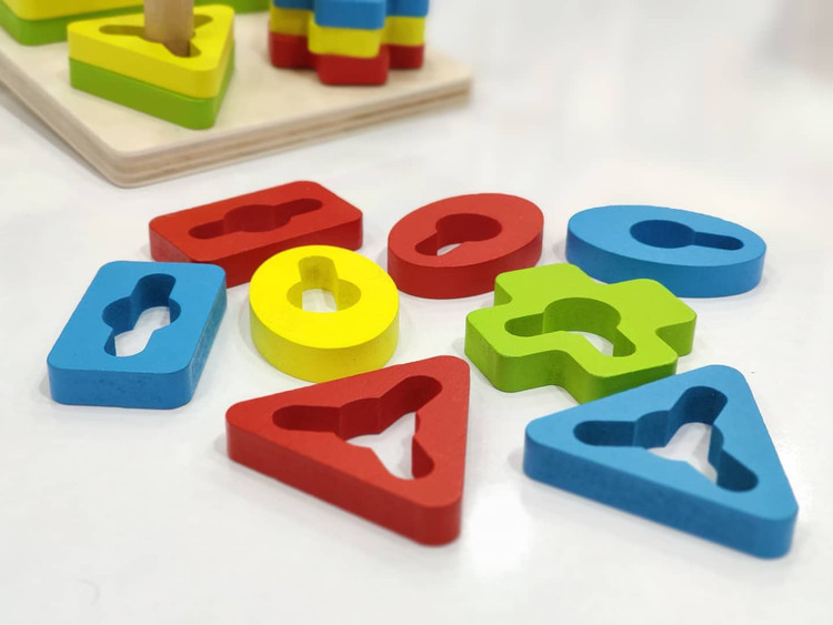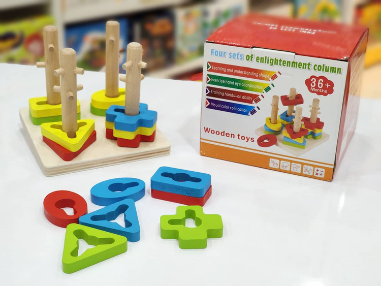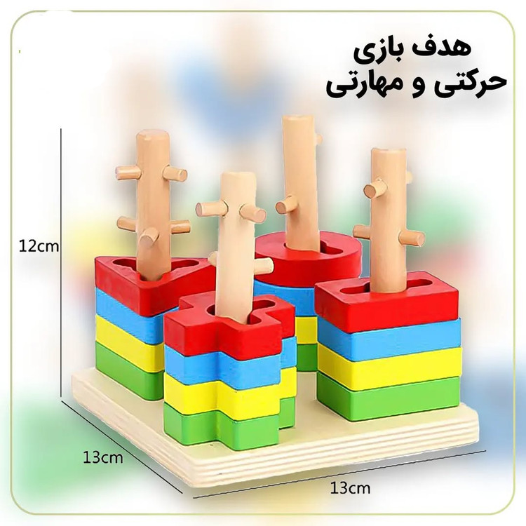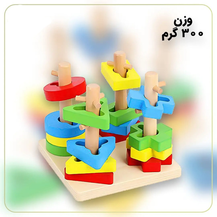 کودک می بایست این اشکال چوبی را از جای خود خارج کرده و با توجه به میله های پایه که مانع دار هستند، شکل متناسب با آن را پیدا و سرجای خود قرار دهد.