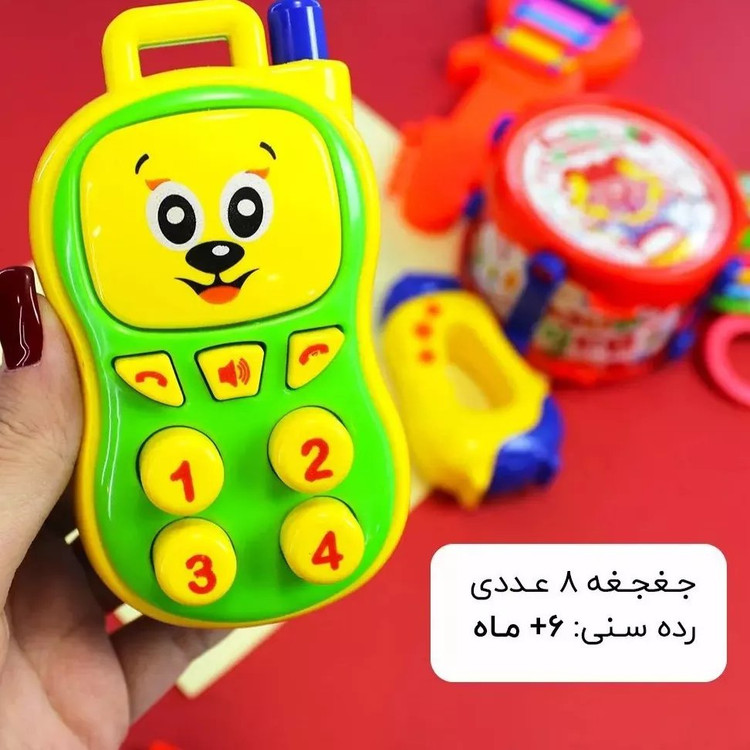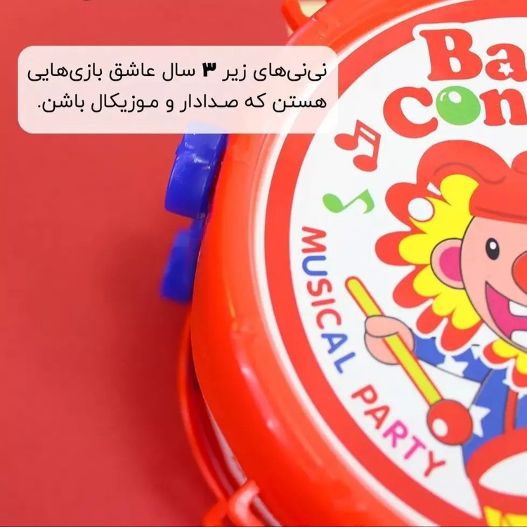 در بستهبندی این محصول ۵ عدد جغجغه و یک عدد طبل، دو عدد چوب طبل است. کودک با استفاده از چوبها بهراحتی میتواند طبل را به صدا در بیاورد و صدای جدید تولید کند. همچنین خلاقیت و آشنایی با حواس نوزادان تقویت میشود