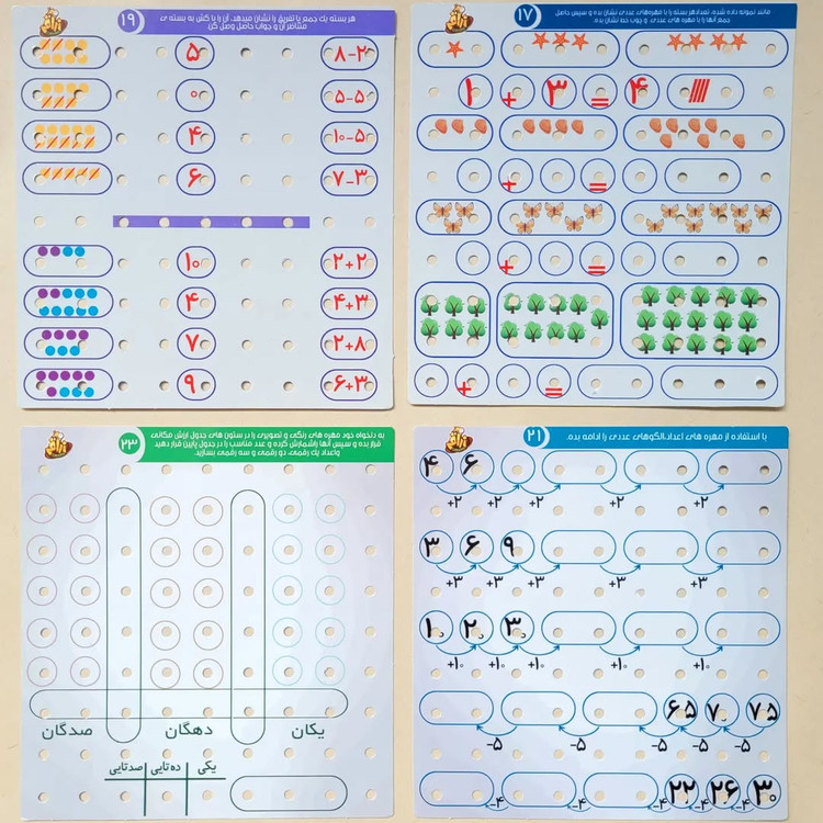 تناظر یک به یک/الگویابی رنگها،اشکالو اعداد/آشنایی با مفاهیم پایه ای ریاضی/آشنایی با اعداد و نمادها و علایم ریاضی. (منطبق با آموزش های ریاضی پیش از دبستان و دبستان). ✔ارسال پستی به تمام نقاط ایران✔
