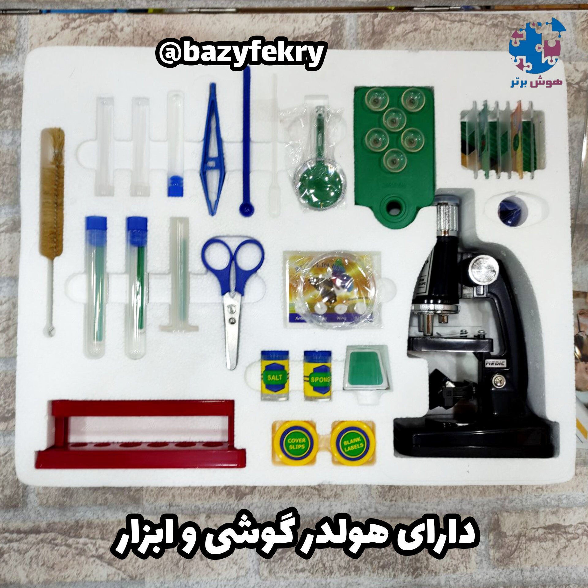 میکروسکوپ آموزشی مدیک مدل MH-1200 سه لنزه، نوری همراه نگهدارنده موبایل با حداکثر قدرت بزرگنمایی 1200 برابری دارای نگهدارنده موبایل برای ثبت عکس از چشمی میکروسکوپ نوری دارای آینه و لامپ روشنایی دارای سه لنز با بزرگنمایی 100، 450 . 1200 برابر دفترچه راهنمای فارسی ابعاد میکروسکوپ: 7*11*21 سانتی متر ابعاد بسته بندی: 10*30*40 سانتی متر