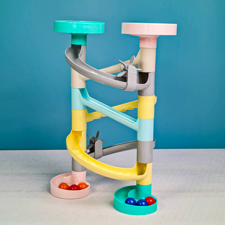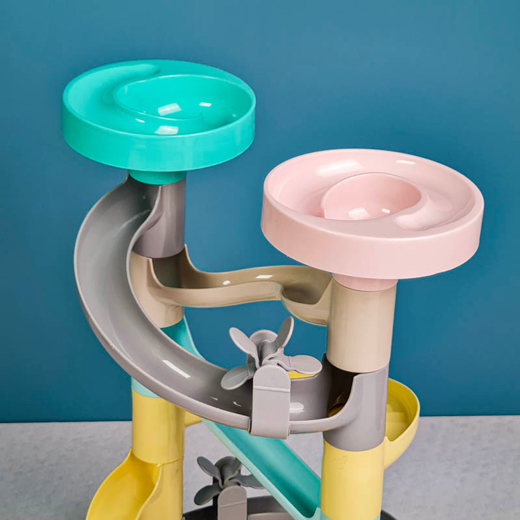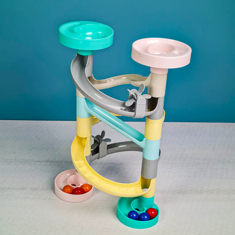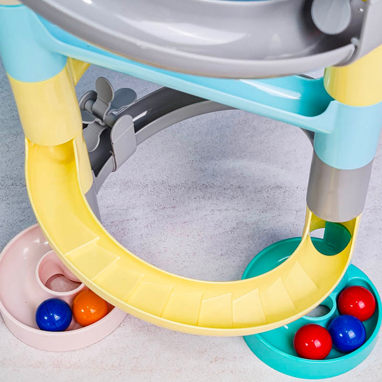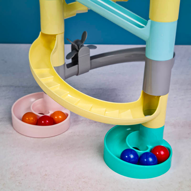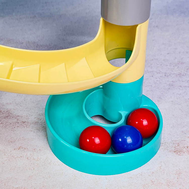 اسباب بازی برج توپ و سرسره رولینگ به آسانی به دوست کوچک کودک شما تبدیل می شود و با هم بهترین زمان ها را سپری خواهند کرد. همچنین این اسباب بازی آموزشی برای آموزش مهارت های ذهنی مانند تقویت مهارت حل مسئله و فیزیکی کودک مانند دست ورزی بسیار ایده ال است. اسباب بازی سرسره راه توپ مناسب گروه سنی 12 ماه به بالا است و دارای قطعات سر رنگی می باشد که با روی هم قرار دادنشان سرسره ساخته می شود. این اسباب بازی سرسره شامل 6 توپ کوچک رنگی است و ساخته شده از پلاستیک مرغوب و فاقد مواد سمی می باشد. قرار دادن توپ های رنگی در مسیر باعث تقویت دست ورزی کودکان می شود در مسیر این توپ ها سرسره های پلکانی و فرفره هایی قرار دارد که برای کودکان جذابیت بسیار بالایی خواهد داشت.