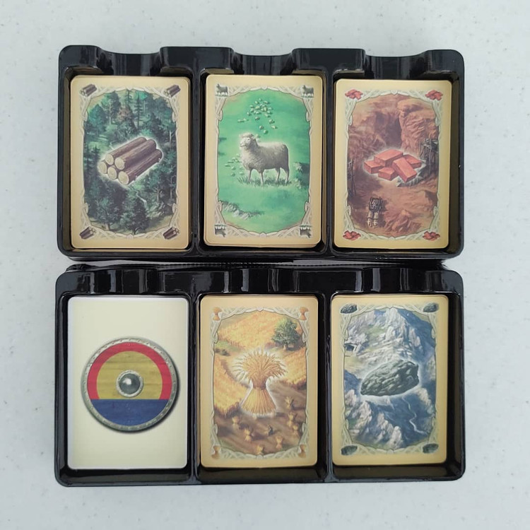 در این بازی زمانی بازیکن تاس میریزه،بقیه بازیکنان هم اگه درکنار عدد مشخص شده دهکده یاشهری داشته باشن میتونن اون منبع رو دریافت کنن ولی درعین حال هم ممکنه ریختن تاس هیچ منبعی رو نصیب شما نکنه و در عوض به بقیه بازیکنا سود برسونه وبرعکس،همچنین اگه مجموع دو تاس عدد ۷رو نشون بده هیچکس منابعی دریافت نمیکنه ودرعوض راهزن کارش رو شروع میکنه و یک منبع رو قفل میکنه ویک کارت هم از بازیکن مجاور با خودش میگیره،که این از قسمت های جذاب بازی هست.
