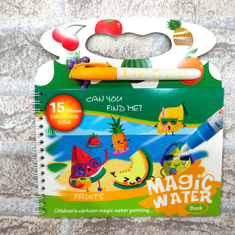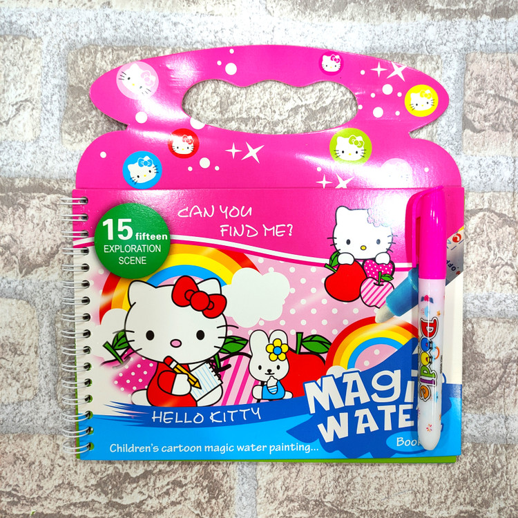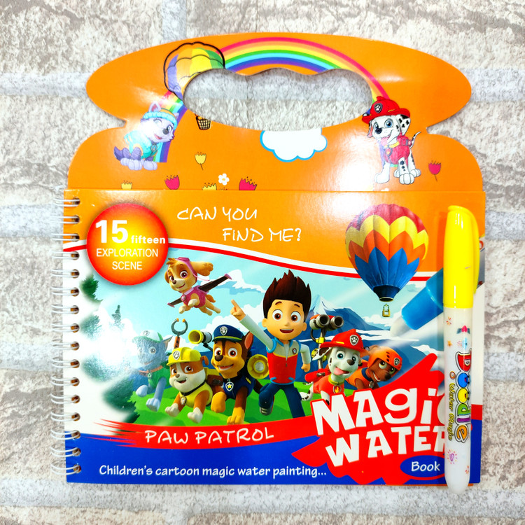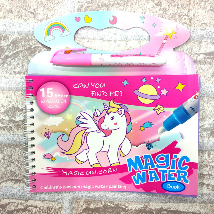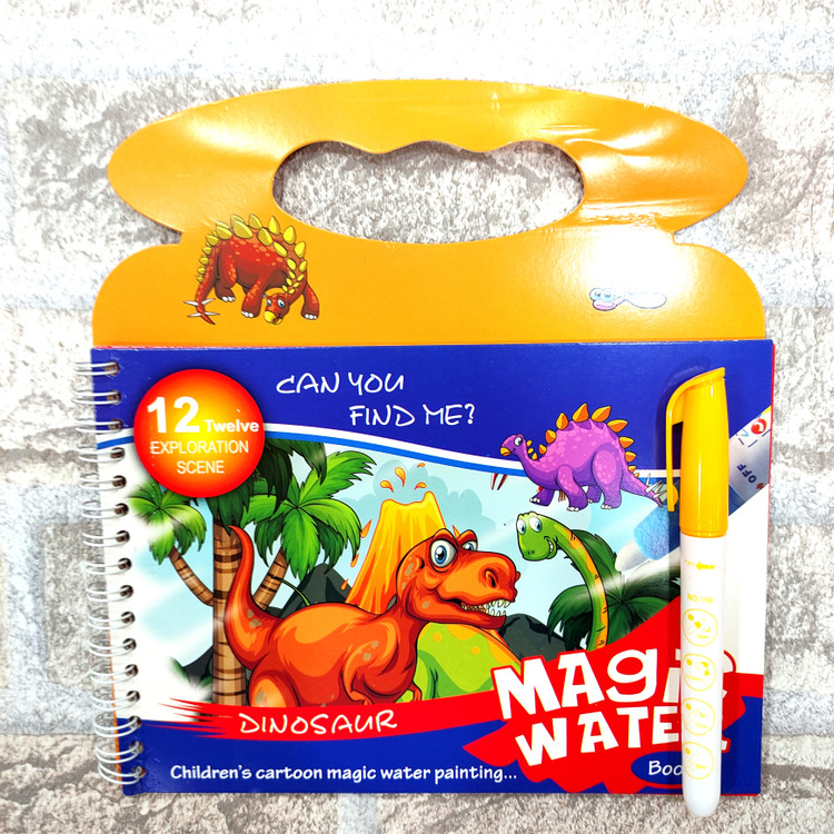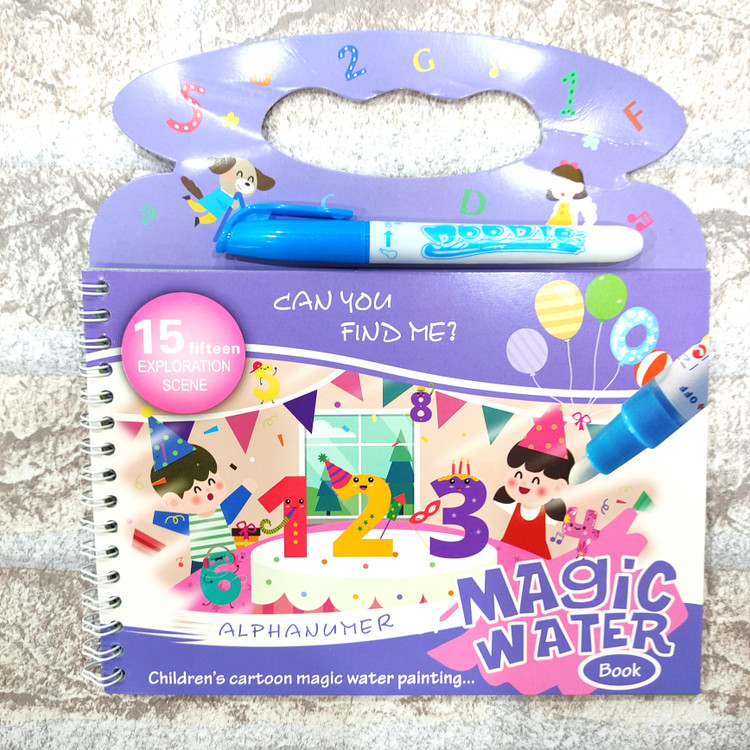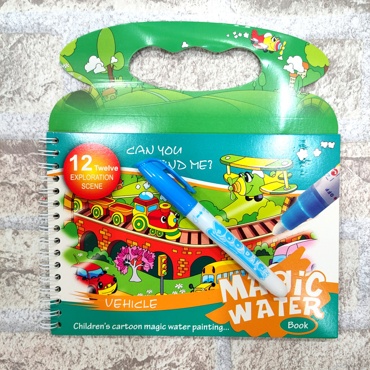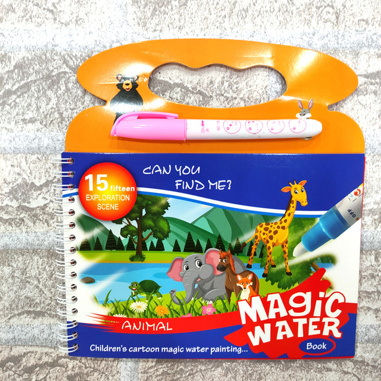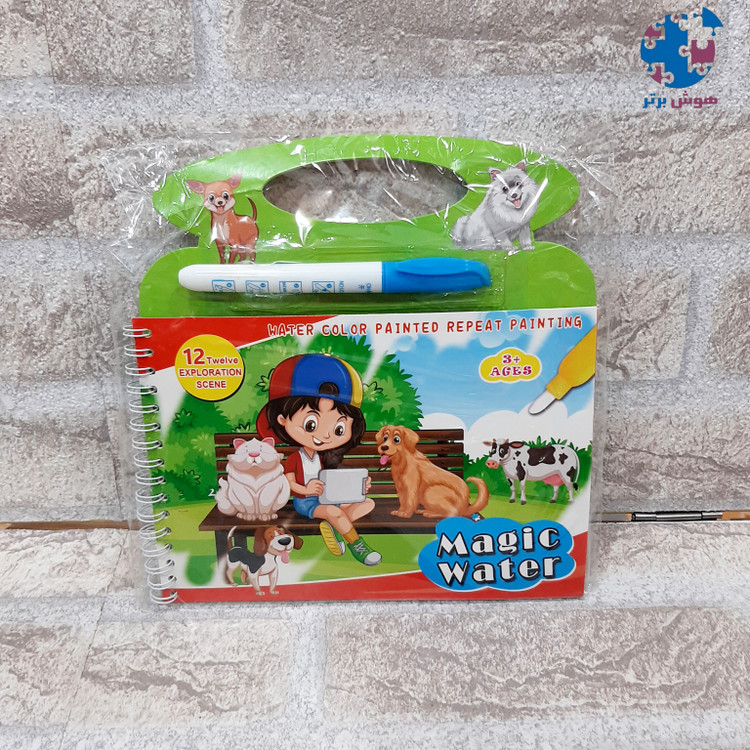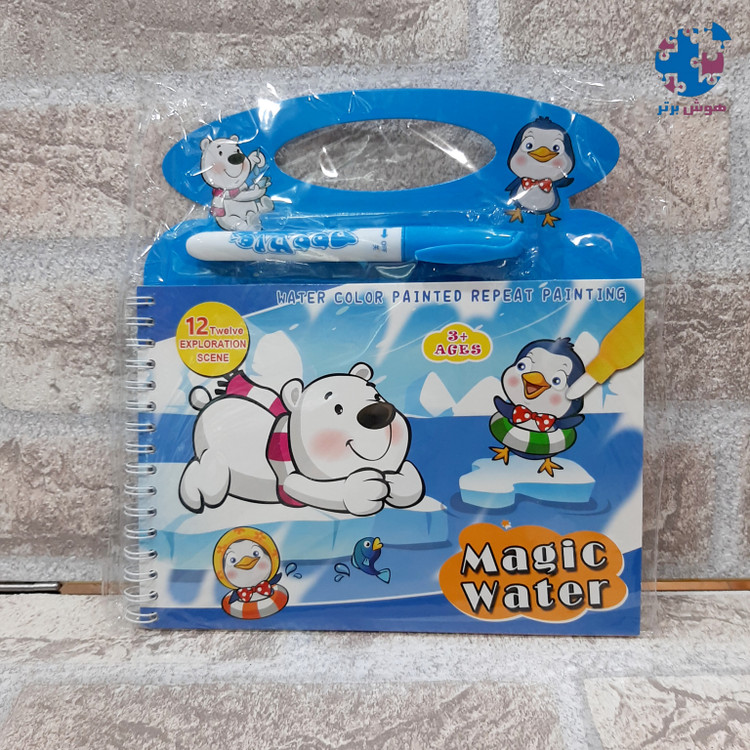 یه دفتر جادویی که ۴ صفحه جهت نقاشی داره یه قلم داره که با آب پر میشه و وقتی روی دفتر کشیده میشه ،تصاویر دفتر رنگی رنگی و خوشگل میشن فوق العاده جذاب و سرگرم کننده ست قلم فقط با آب پر میشه و هیچ جوهری نداره